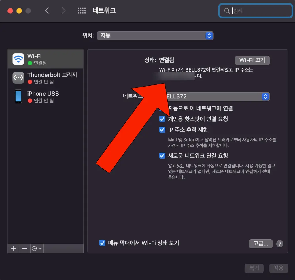 이곳에서 아이피 주소를 확인할 수 있습니다.